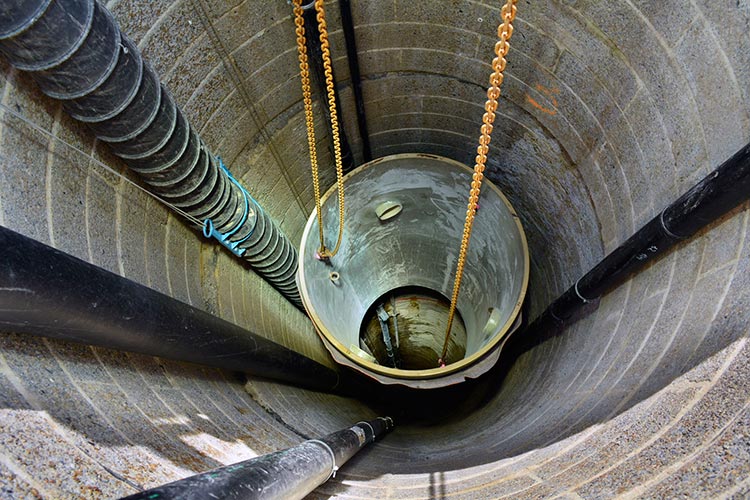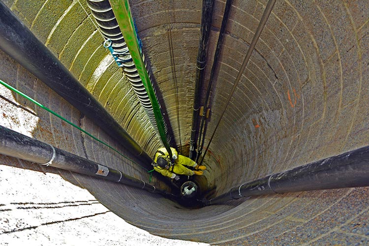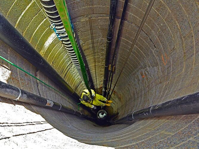 Sanierung eines sechzig meter tiefen Deponieschachtes mit GFK-Wickelrohr-Schachtelementen