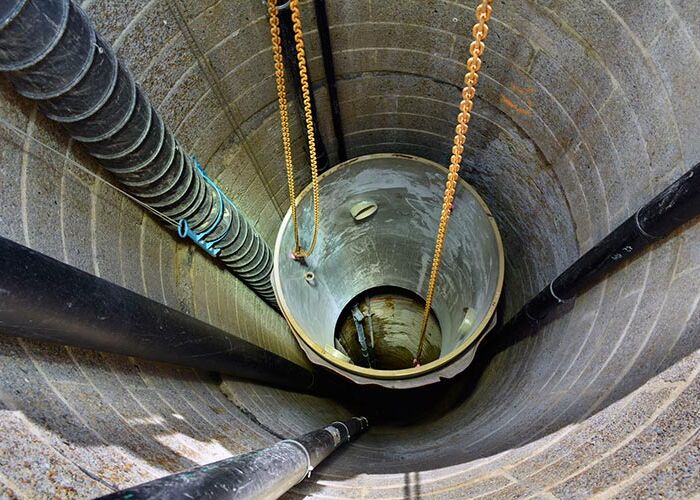 Sanierung eines sechzig meter tiefen Deponieschachtes mit GFK-Wickelrohr-Schachtelementen
