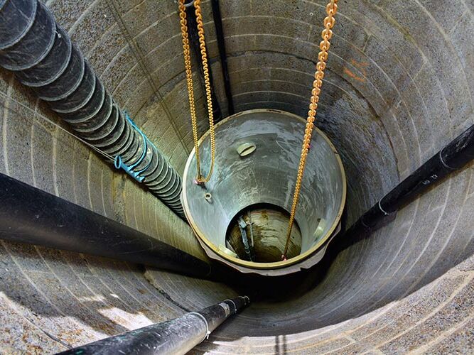 Sanierung eines sechzig meter tiefen Deponieschachtes mit GFK-Wickelrohr-Schachtelementen
