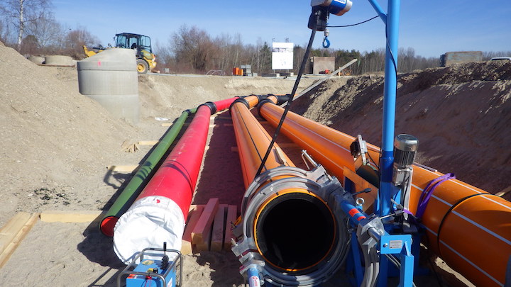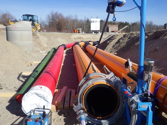 Die Strabag AG Rohrleitungsbau in Regensburg beauftragte Hopfgartner zur Kooperation bei den Rohrleitungsverlegearbeiten. Der Auftrag beinhaltet die fachgerechte Verlegung der Kunststoff-Druckrohre