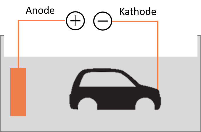 Bild 1: Funktionsprinzip - Kathodische Tauchlackierung (KTL)